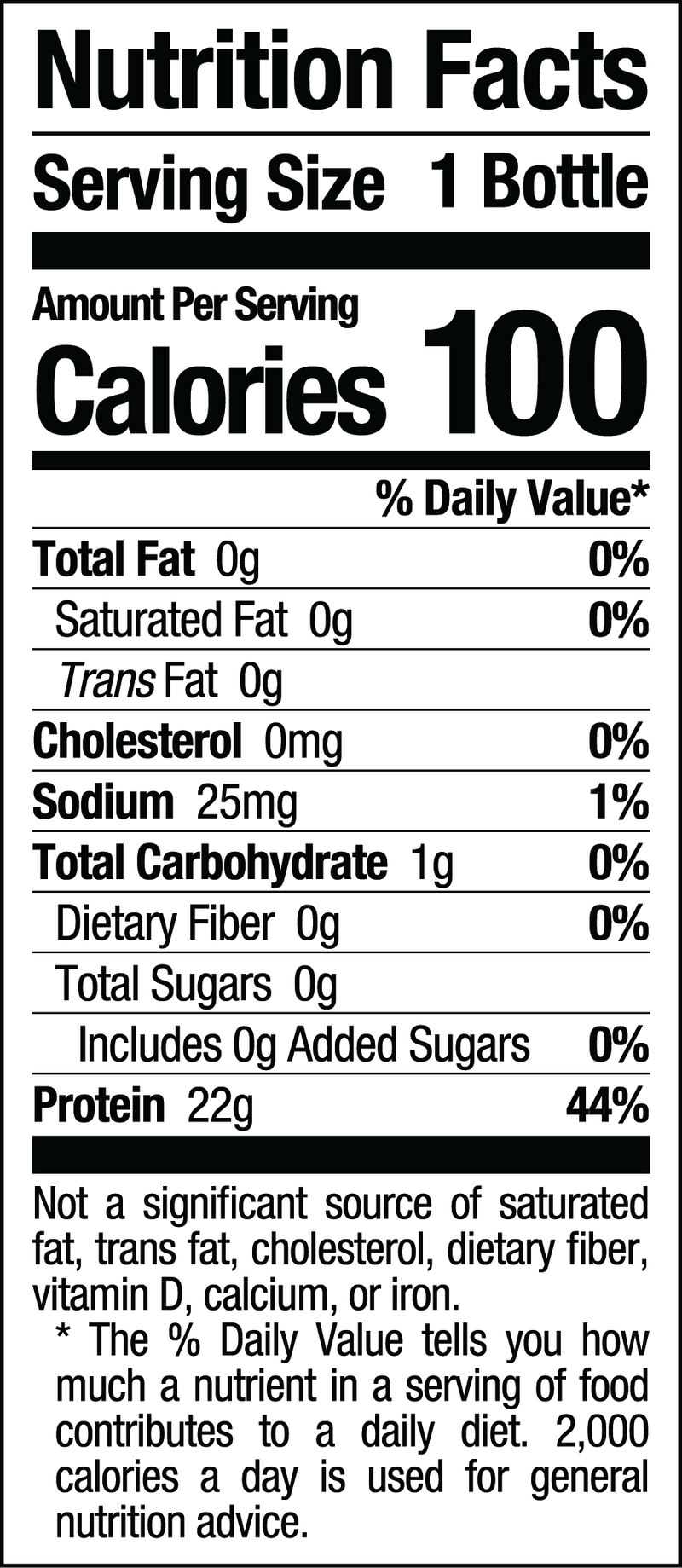 INGREDIENTS: Filtered Water, Whey Protein Isolate, Natural and Artificial Flavors, L-Carnitine, Malic Acid, Citric Acid, Sucralose, Potassium Sorbate (preserves freshness), Sodium Benzoate (preserves freshness), Acesulfame Potassium, Calcium Disodium EDTA (to protect flavor).