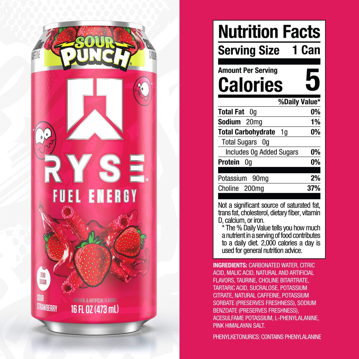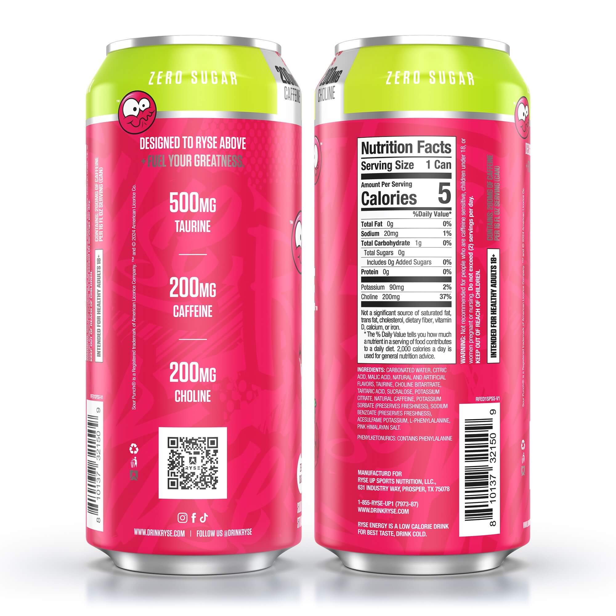 INGREDIENTS: Carbonated Water, Citric Acid, Natural & Artificial Flavors, Taurine, Choline Bitartrate, Potassium Citrate, Natural Caffeine, Sucralose, Potassium Sorbate (preserves freshness), Sodium Benzoate (preserves freshness), Acesulfame Potassium, Phenylalanine, Pink Himalayan Salt Phenylketonurics: Contains Phenylalanine