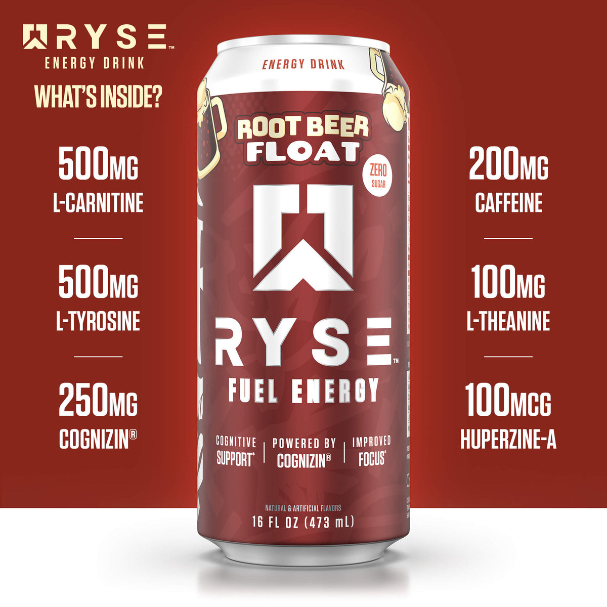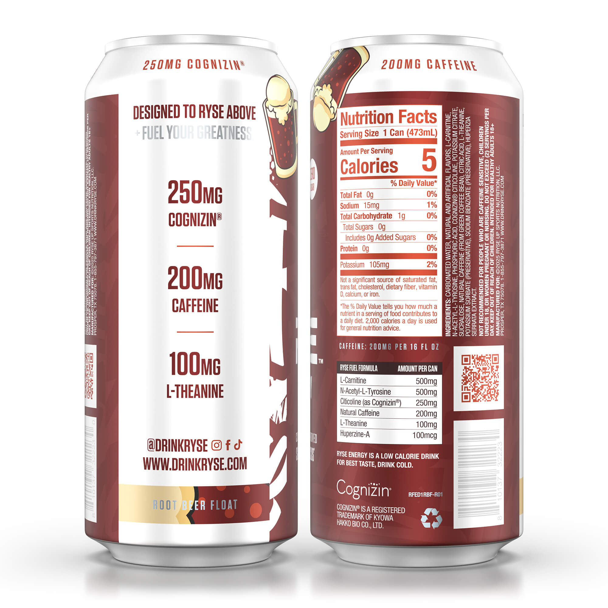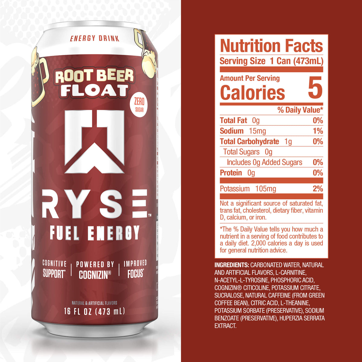 INGREDIENTS: CARBONATED WATER, NATURAL AND ARTIFICIAL FLAVORS, L-CARNITINE, N-ACETYL-L-TYROSINE, PHOSPHORIC ACID, COGNIZIN® CITICOLINE, POTASSIUM CITRATE, SUCRALOSE, NATURAL CAFFEINE (FROM GREEN COFFEE BEAN), CITRIC ACID, L-THEANINE, POTASSIUM SORBATE (PRESERVATIVE), SODIUM BENZOATE (PRESERVATIVE), HUPERZIA SERRATA EXTRACT.
